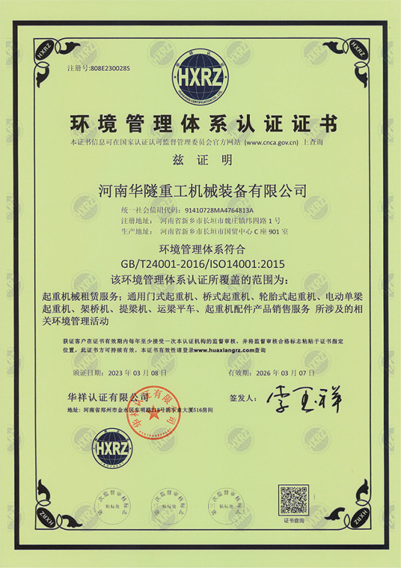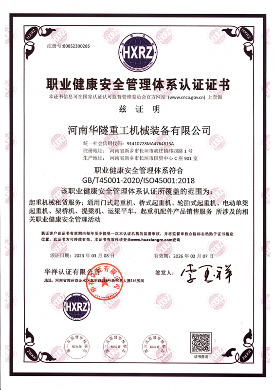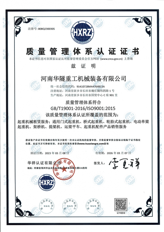 河南華隧重工機械裝備有限公司主要從事通用門式起重機、橋式起重機、電動單梁起重機,輪胎式起重機、架橋機、提梁機、遠梁平車、鋼絲繩電動萌蘆、卷揚機、起重配件制造、銷售:起重機械租賃、安裝和維修,起重設備園收,機械設備維修,鋼結構工程承包,橋梁工程及技術咨淘服務,銷售五金制品、機電設備:建設工程監(jiān)理,建設工程設計,各類工程建設活動,建筑勞務分包,建筑物折除作業(yè),施工作業(yè),工程管理服務,土石方工程施工,裝如發(fā)運?! 」疽淹ㄟ^IS0國際質量、環(huán)境、健康與安全三合一標準認證,特種設備制造許可證和特種設備安裝改造維修許可證。擁有完熟的質量管理體系。嚴格的管理制度,強大的生產能力和先進的檢測手段,在保證產品質量的同時,也具備了極強的市場競爭力?! 」緢猿挚萍紕?chuàng)新為理念,產品質量為核心,注重信譽,建立了減信可靠、快捷、思速。便利周到的售后服務網絡?! ∥覀儞碛械募夹g專家和技術服務隊伍為客戶提供充善的售前技術支持和全天候的售后服務體系,讓您無后顧之憂,享受一站式的超值服務?!  叭A隧重工,伴您成功“是華隧重工永遠的宗指,真被的希望與各界朋友攜手并進。共創(chuàng)輝準!